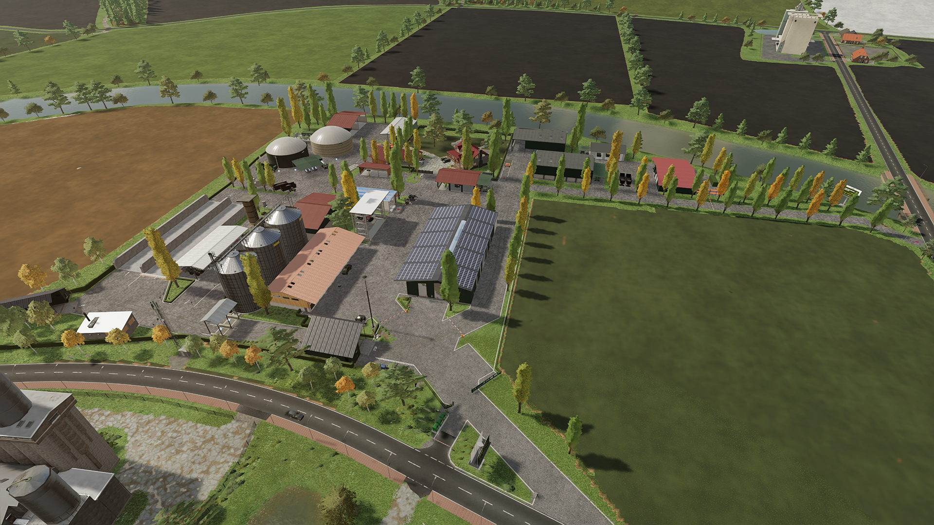 Zu sehen: Die aktuelle Vogelperspektive des Firmengeländes des LU Meierhof Kürzliche Änderungen: - Hauptzufahrt 1 (südlich) - erster Hallenkomplex wurde vergrößert, da der Fuhrpark erweitert wurde - neuer Ballenhof (oben rechts), da erste Version auf Dauer nicht zu funktionabel wie geplant)