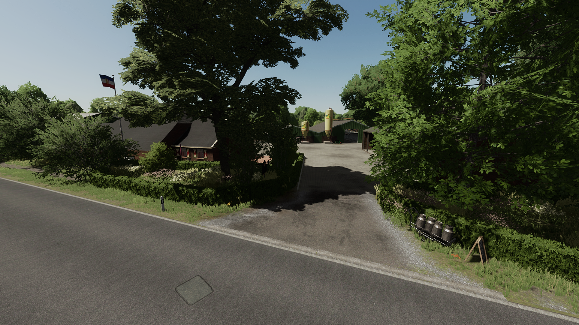 Bullen-Kälberstall - Güllesilo zum umpumpen in Güllewagen - mittlere Kuhstall mit dahinterliegender Weide - Getreidelager Halle - und Rübenlage