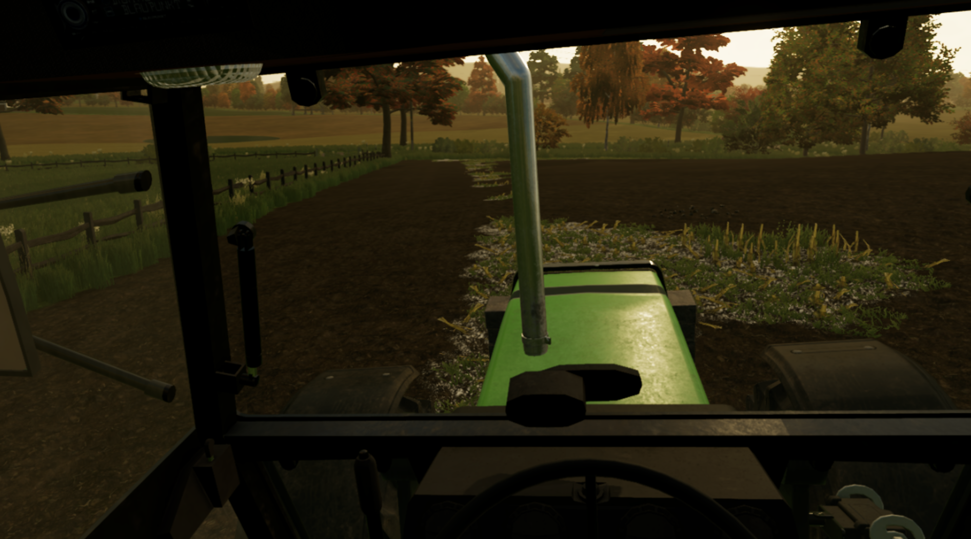 Maisstoppel grubbern im Sonnenuntergang