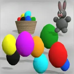 Das Paket beinhaltet einen Eierkorb, viele bunte Ostereier und ein süßes Kaninchen.