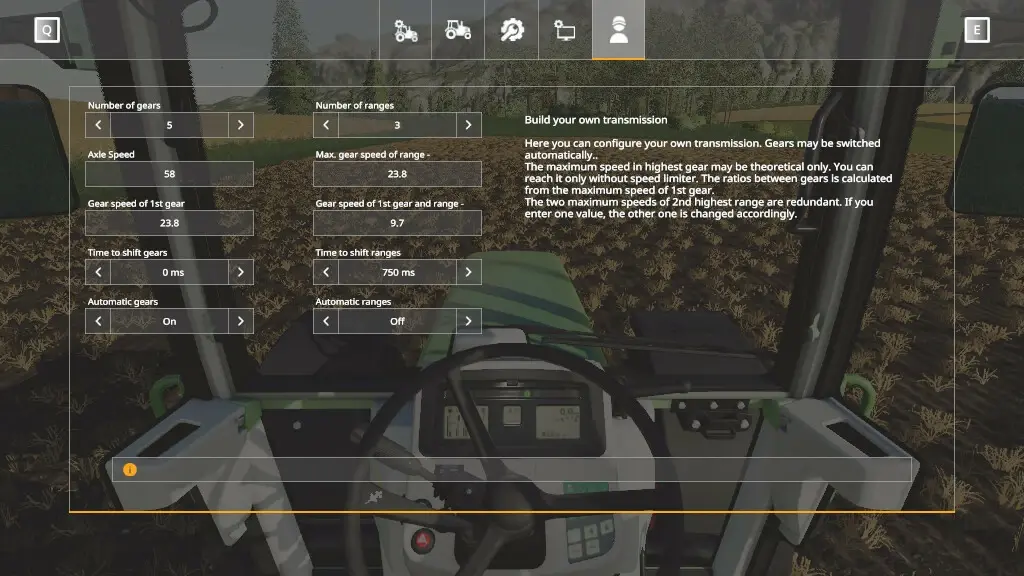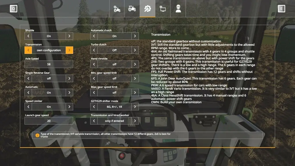 - Sichern und Laden von eigenen Getriebekonfigurationen