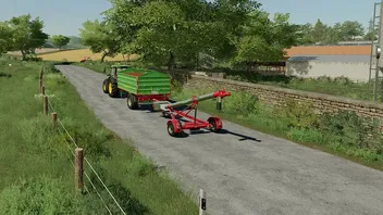 Diese Überladeschnecke ist hinter einem Anhänger einfach zu transportieren, kann aber auch durch das verbaute Batterie Modul völlig autark gefahren werden.