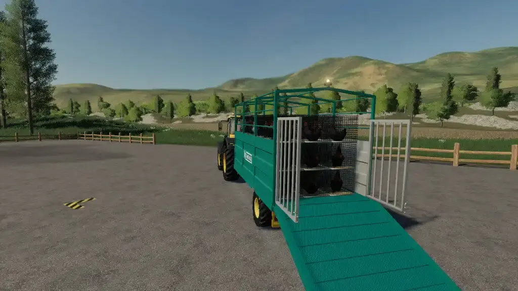 Wenn die Map für den Transport von Hühnern vorbereitet ist und der Livestock Trailer Addon Modvon GtX Andiverwendet wird, kann dieser Anhänger auch Hühner transportieren.