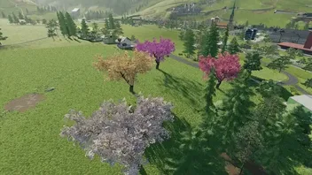 -Bäume mit den Farben: rosa, lila, gelb und weiß.