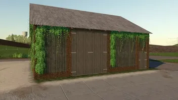 - Alte Ziegelscheune mit einem Tor.