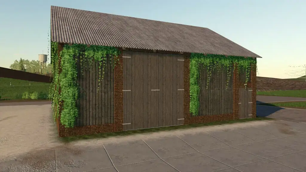 - Alte Ziegelscheune mit Werkstatt und Tor.