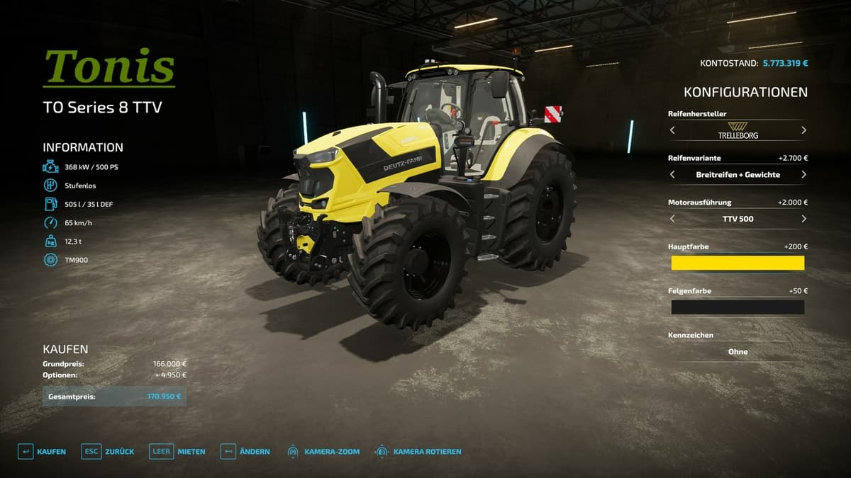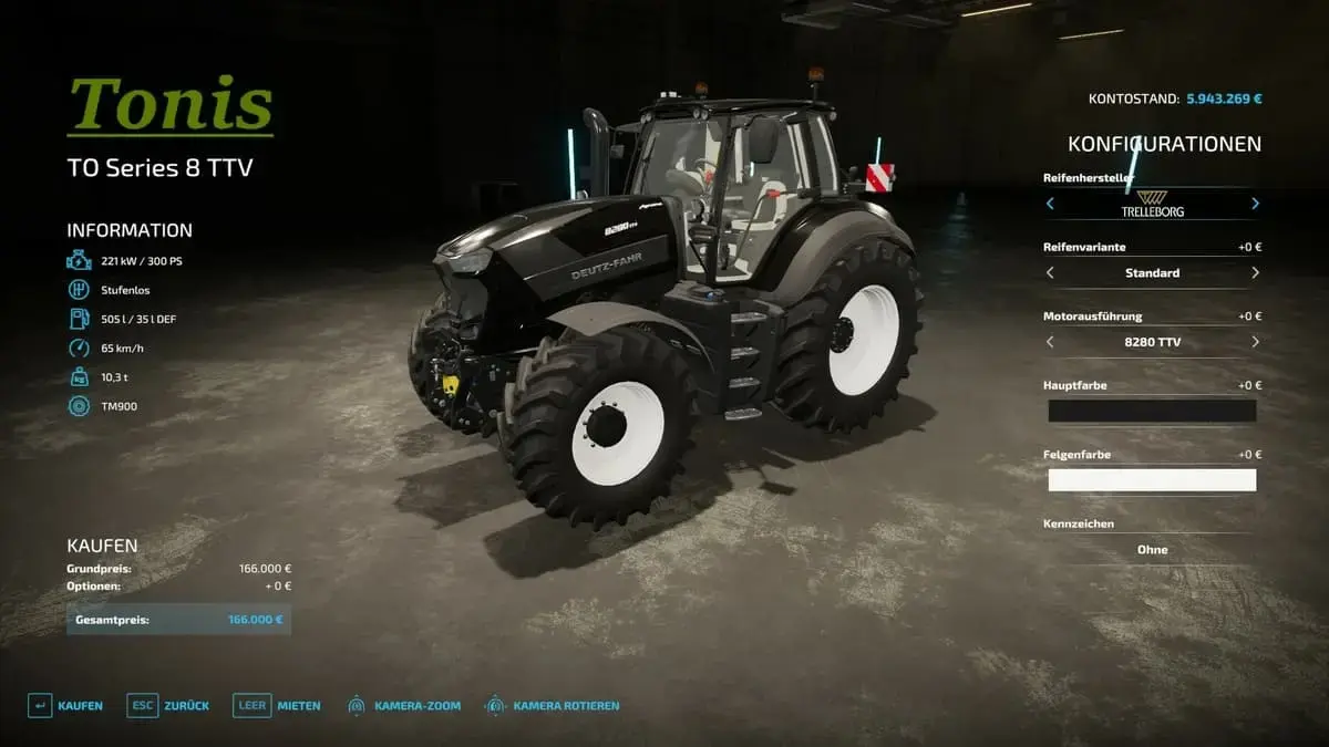 es wurde eine Standartfarb und Motorauswahl ( 300 , 400 , 500 und 600 PS) hinzugefügt.