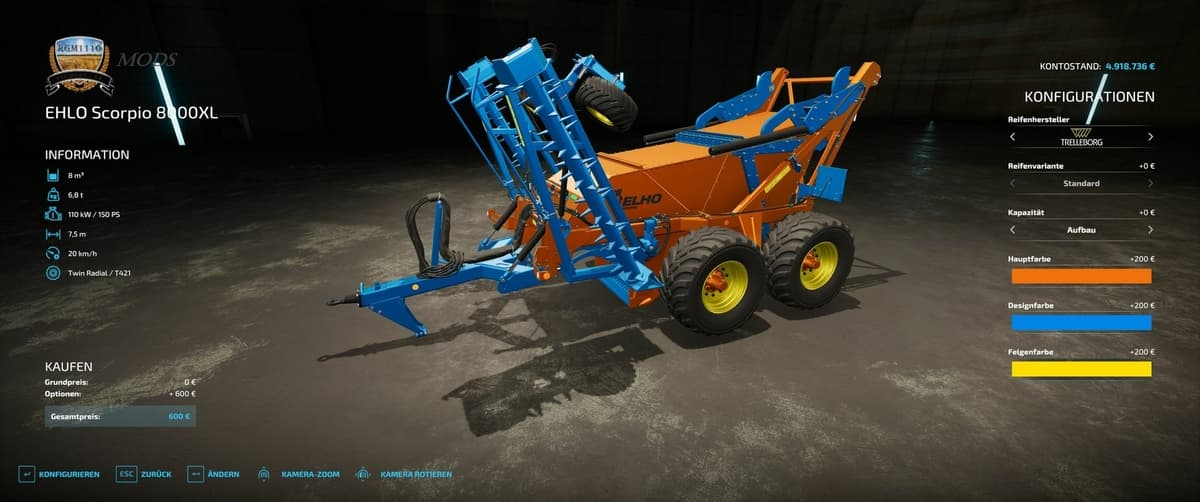 - leicht erhöhter Arbeitsbreite (8m), auch Helferoptimiert (7,5m)