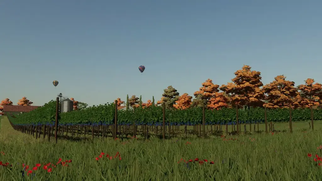 Traubenreben mit Variablen Breiten/Abständen zwischen den Reihen.