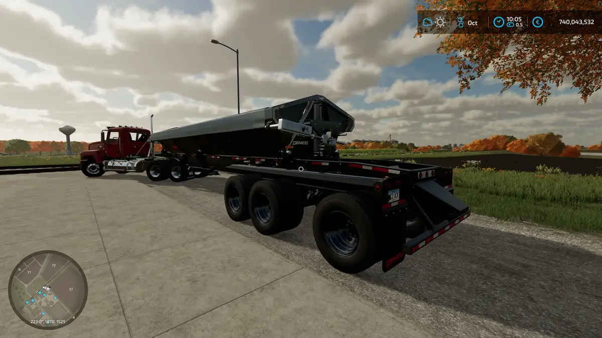 This is a customizable DEMCO Side Dump semi trailer edit to the base game trailer.