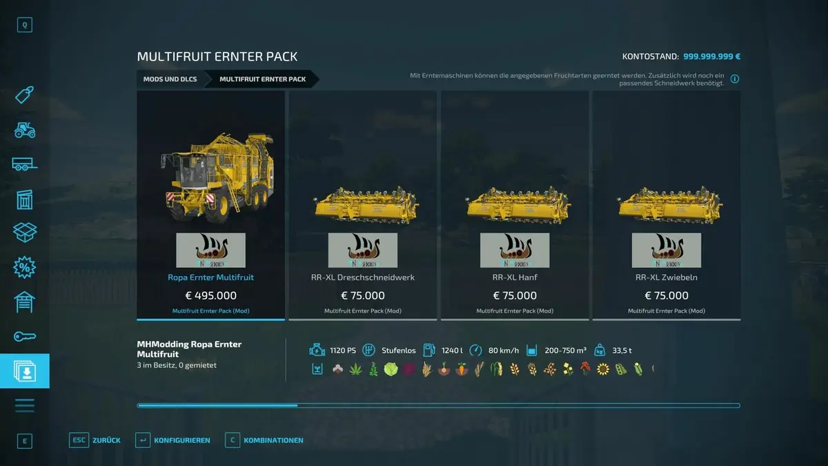 Ropa Tiger Multifruit Ernter mit erweiterter Kapazität,
