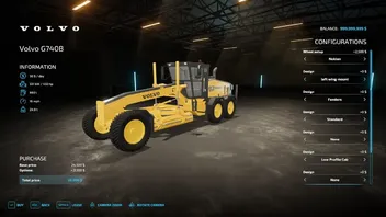 This pack contains Volvo G740B, Volvo G740, Champion 740A Series VI, and Champion 740A Series V Graders.