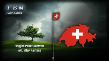 Ein Paket mit Flaggen der Schweiz inkl. aller Kantonsflaggen in drei verschiedenen Mastenausführungen. Die Flaggen können bei Bedarf eingeholt oder auf Halbmast gesetzt werden.