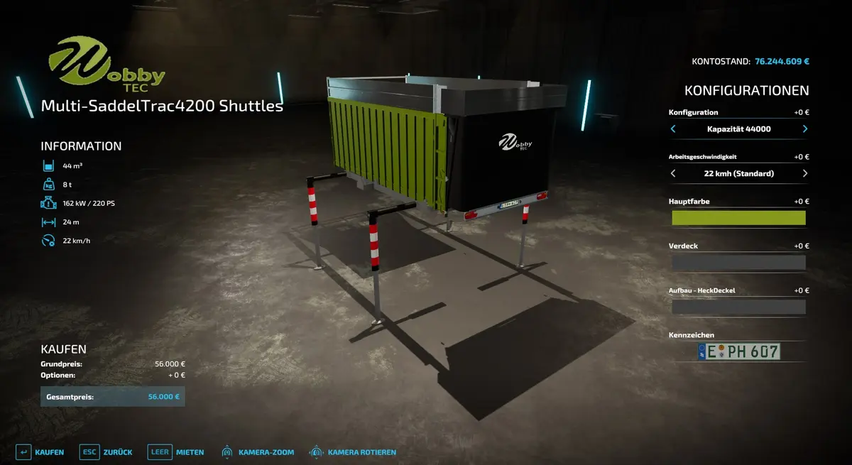- Überlade Shuttle mit 34 m3 + 8.000 €