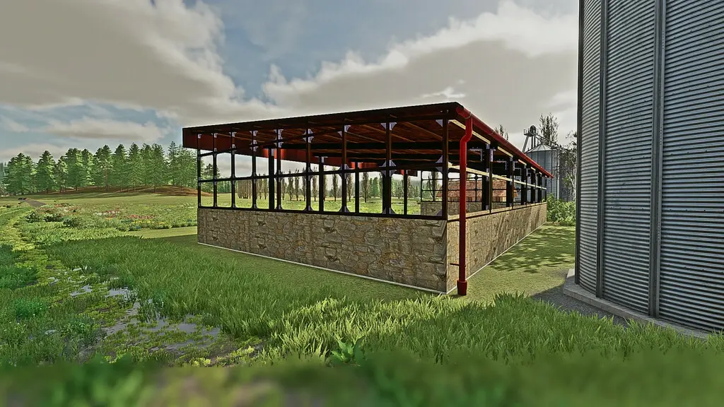 Es gibt ein offenes und ein Lager mit Holzwänden.