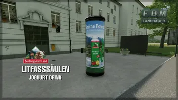 Drei noderne Litfaßsäulen mit verschiedenen Werbemotiven der Milchwerke Berchtesgadener Land Chiemgau eG zum platzieren. Die Werbemotive drehen sich und sind nachts beleuchte. Werbemotive: Bananenmilch, Schokoladenmilch und Johurt Drink.