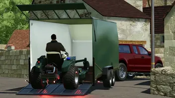 - Anhänger D; langer Kippanhänger; Kapazität für 2 Mähwerke
