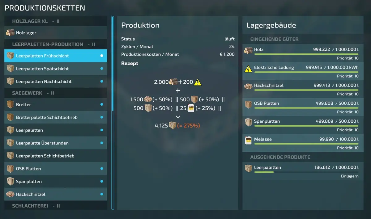 Leerpalettenproduktion für alle die zu wenig Paletten haben und das Produktions-Pack von FED Action benutzen.