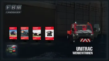 Ein Paket bestehend aus zwei verschiedenen Werbevitrinen des Lindner Unitrac. Die Original Lindner Version hat 4 verschiedene Motive die stündlich wechseln, die Landbauer +electric Version hat 5 Motive die halb-stündlich wechseln. Die Zeitangaben beziehen sich auf die spielinterne Zeit, diese Werbevitrinen sind nur einseitig und kostenlos.