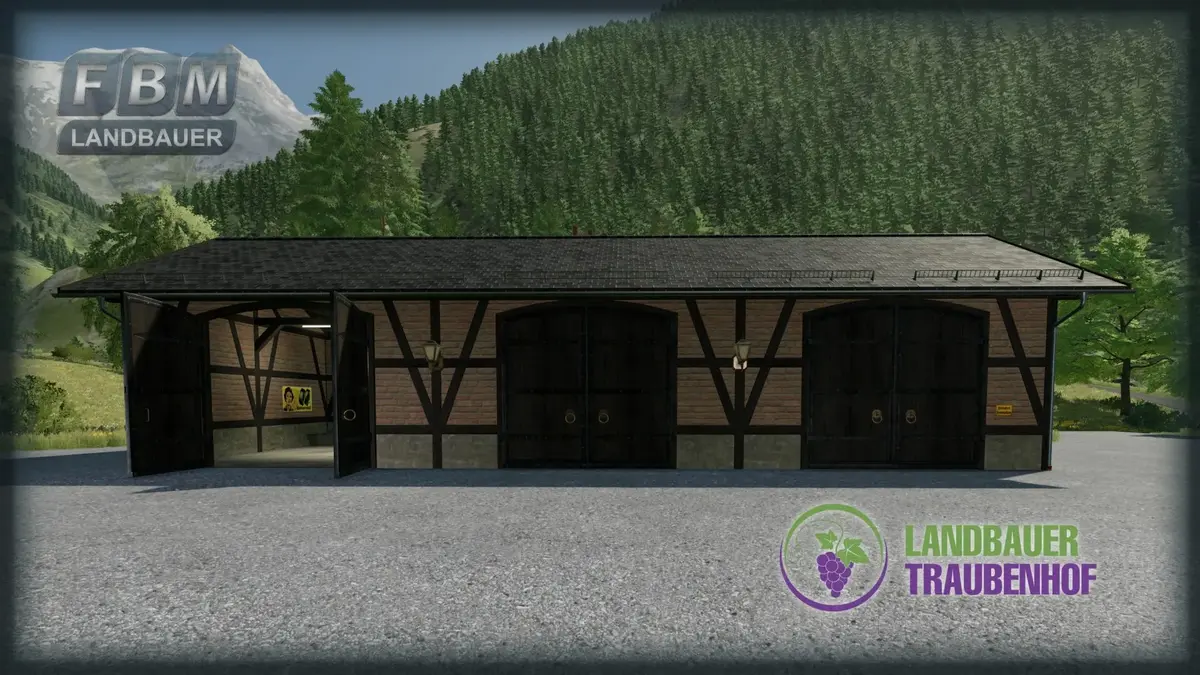 Das Traubenhof Gebäude Paket beinhaltet aktuell 12 verschiedene Gebäudevarianten und 6 verschiedene Dekorationsobjekte. Es enthält jeweils ein Lagergebäude für Paletten und Ballen inkl. losem Heu und Stroh. Alle Gebäudetypen gibt es in 3 verschiedenen Ausführungen die sich im aussehen unterscheiden. Des Weiteren enthät das Paket reine Unterstell- bzw. Garagengebäude. Da es sich um Hofgebäude handelt sind sie nicht kosstenlos im Gegensatz zu den Dekorationsgegenständen (ausser der Hoflaterne), diese sind wie gewohnt kostenlos. Die Dekorationsgegenstände sind drei verschiedene Blumentröge und zwei alte Eichenfässer.