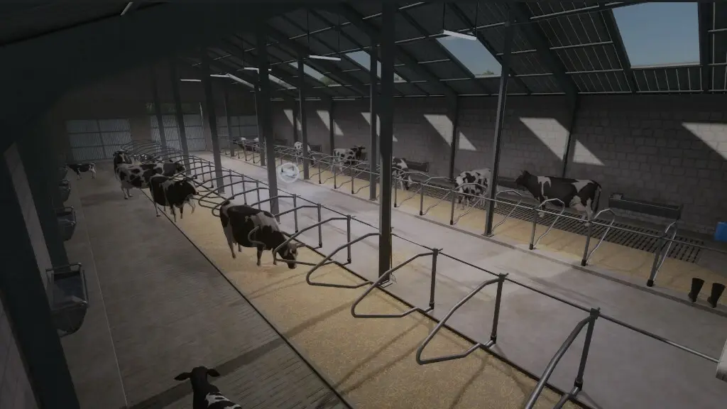 Ein großer weißer Stall für Kühe.