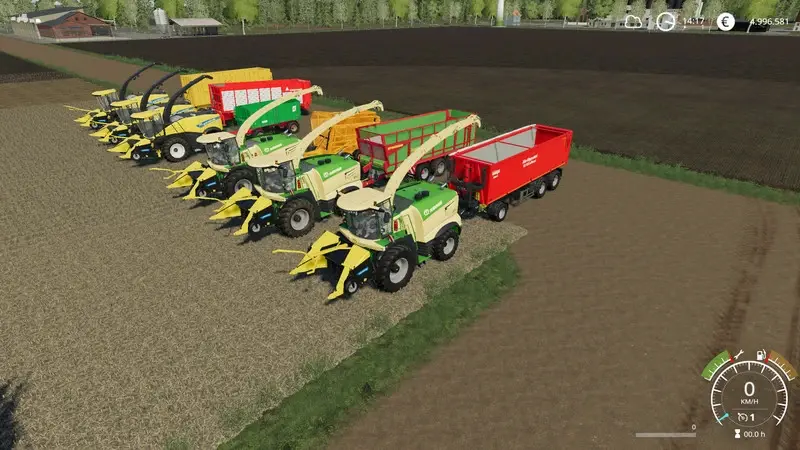 Es besteht aus : Krone Big X1180 , New Holland FR 780 und dem ehemaligen Pappelschneidwerk was jetzt Zuckerrohr erntet.