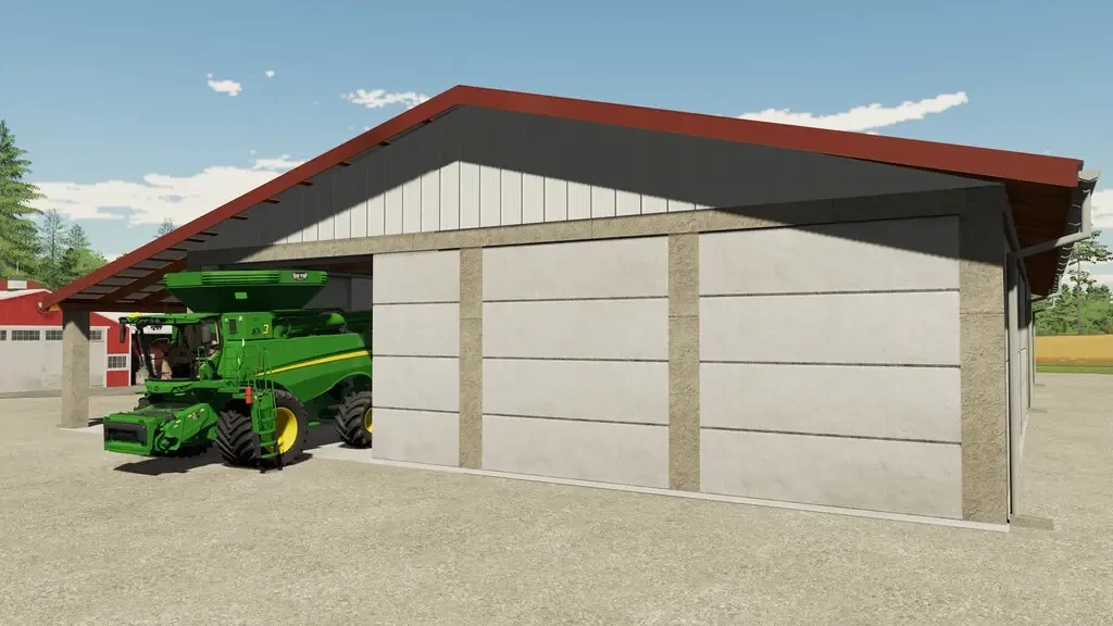 Große Lagergarage, in der Sie Maschinen oder Feldfrüchte lagern können.