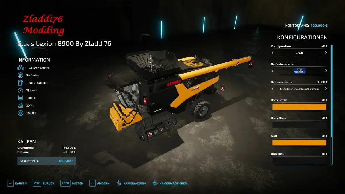 Claas Lexion 8900 Multicolor , Breitere Crawler und Doppelbereifung , Reparaturintervall erhöht , Fahrgeschwindigkeit auf 73km/h.