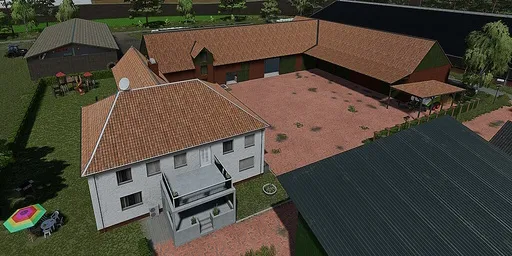 Neben ausreichend Abstellfläche für eure Landmaschinen könnt ihr eure Ernte im Getreidesilo einlagern und im alten Schweinestall bis zu 36 Tiere halten.