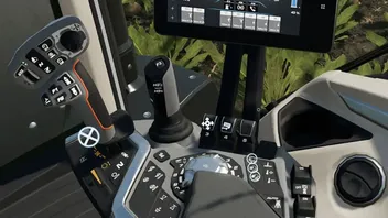 Massey Ferguson 8S mit mehreren Änderungen, einschließlich interaktiver Steuerung (einschließlich Sounds), Ballenterminals, echtem GPS, Dashboard Live, FD-Sounds (Credit FD).