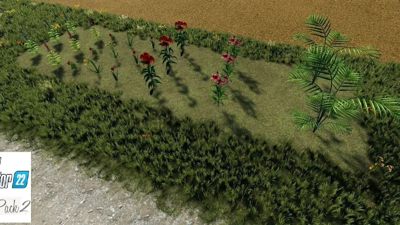 Dies ist eine weitere Packung mit sieben dekorativen Blumen und einem dekorativen Farn für FS22.