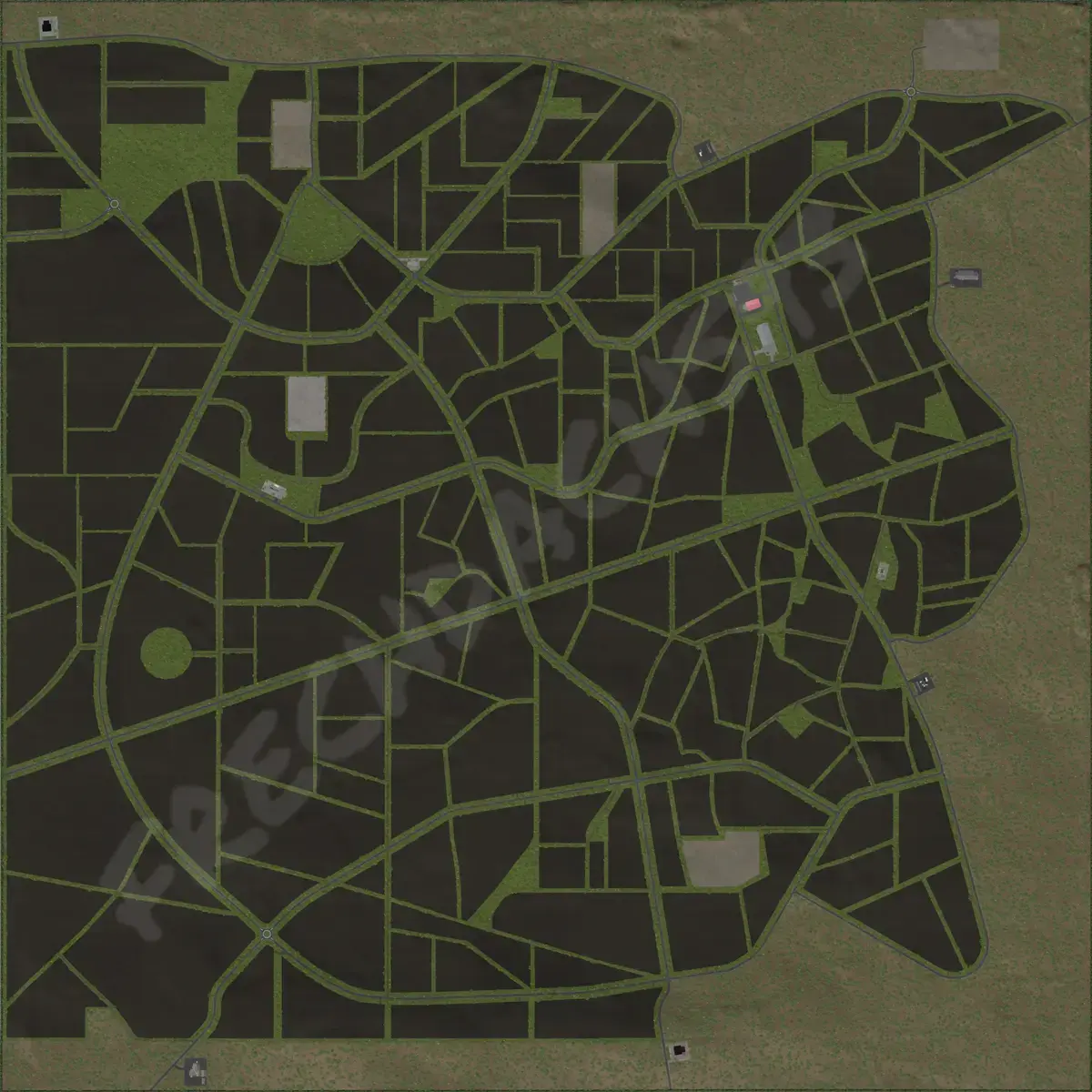 Für die Dekoration wurde Meadow(Wiese) verwendet. Diese kann im Baumenü selber gemalt werden und sich auf der Karte(PDA) angezeigt werden. -