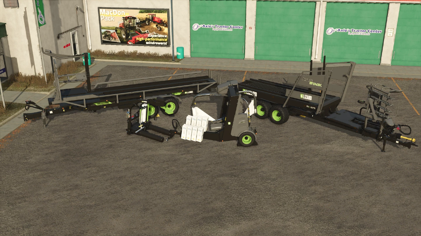 Ein Paket mit Ballentransportern und -wicklern der Marke Lizard mit geringfügigen Verbesserungen der Lebensqualität und Unterstützung für benutzerdefinierte Ballengrößen (populär geworden durch „Selectable Bale Capacities“ und „Ultimate Mowing and Baling Pack“).