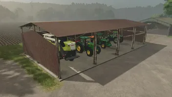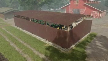 Ein alter, rostbedeckter Schuppen, eine gute Wahl für die Lagerung von Maschinen oder Feldfrüchten.
