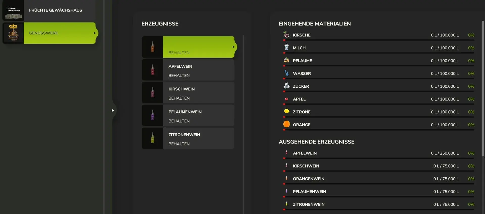 -Apfel – Zitronen – Orangen – Pflaumen – und Kirsch-Wein