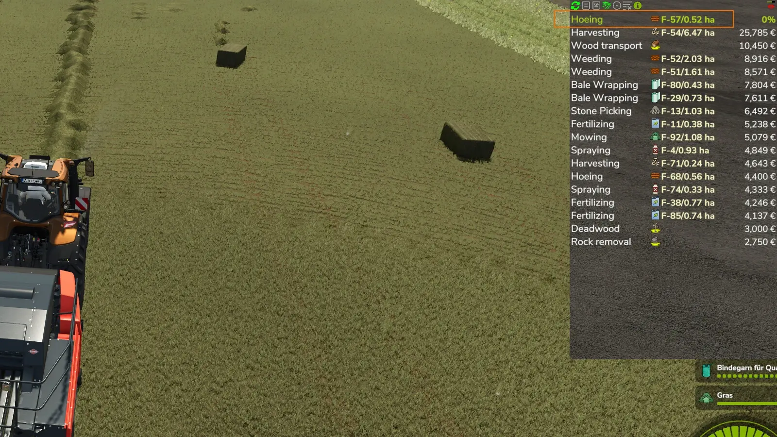 Missions Erweiterung: Dieser Mod setzt neue Balance bei Missionen und kleinen Feldern oder unter 2500 Belohnung, zusätzlich kann man beim Mähen und Ernten das Streu/Gras einsammeln als Bonus und man behält mehr Fill über bei Ernte Aufträgen. Alles optional Einstellbar über die Lua selbst.