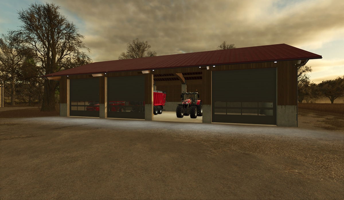 Diese Maschinenhalle kann zum Unterstellen von Fahrzeugen genutzt werden.