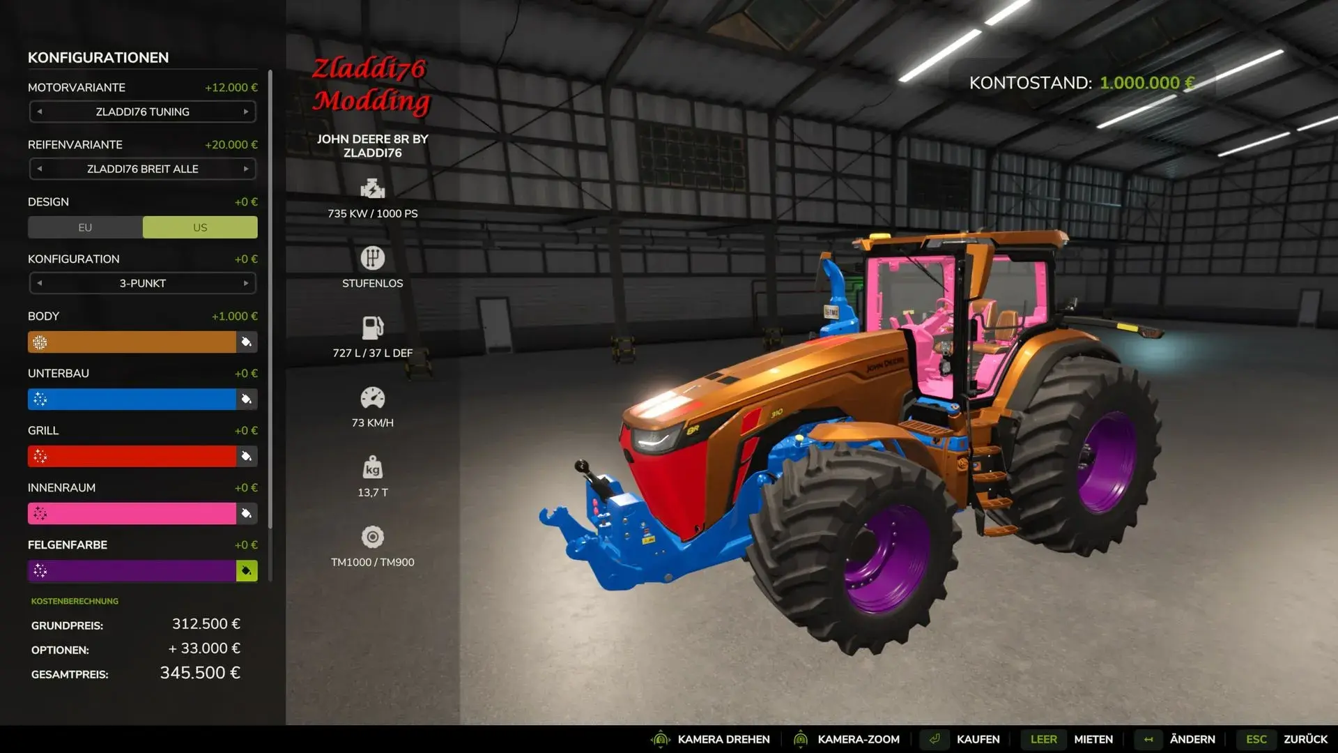 John Deere 8R By Zladdi76 Multicolor mehr Ps geschwindigkeit erhöht Breite reifen