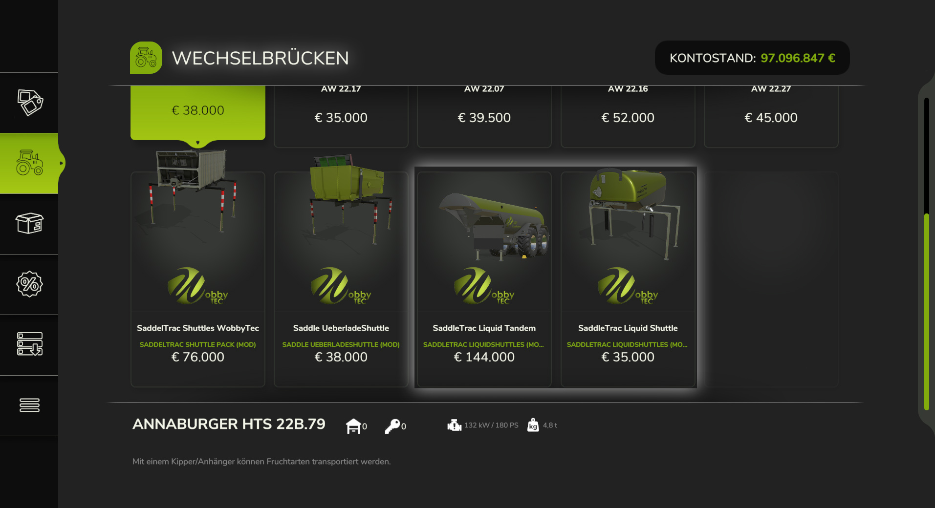 - Tandem - Shuttle als 2-Achser Auflieger im Shop in folgenden Varianten wählbar :
