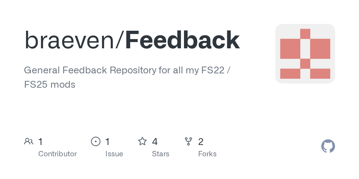 GitHub - braeven/Feedback: General Feedback Repository for all my FS22 / FS25 modsGeneral Feedback Repository for all my FS22 / FS25 mods - braeven/Feedbackgithub.com -