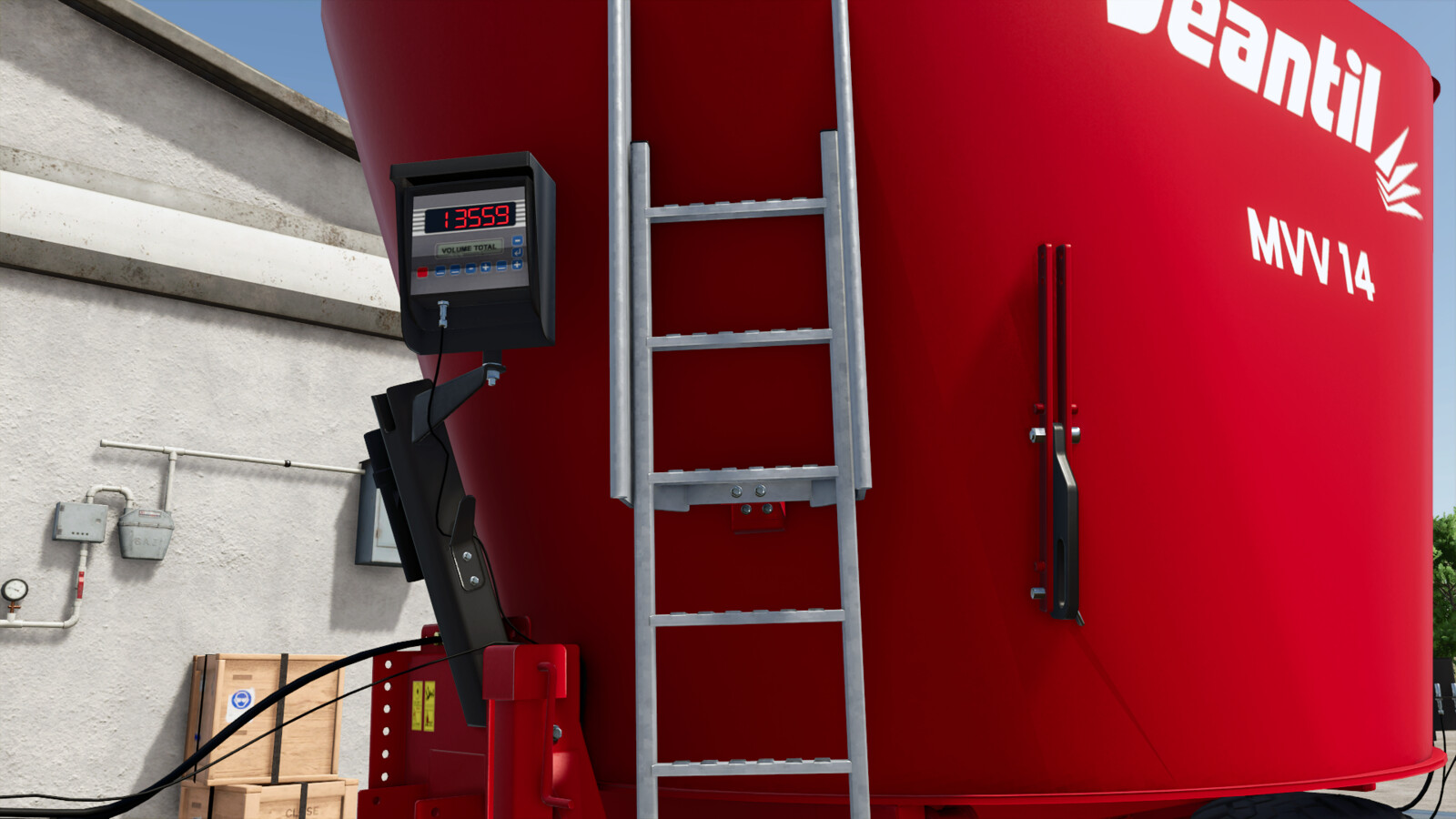 Ein-Schnecken-Futtermischwagen mit einem Fassungsvermögen von 14 m³.