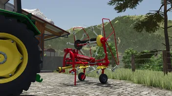 Der Pöttinger HIT 47 N ist ein 4-Kreisel-Wender mit 6 Armen und hydraulischer Hochschwenkung - für den sicheren und platzsparenden Transport sind die Kreisel eindrehbar.
