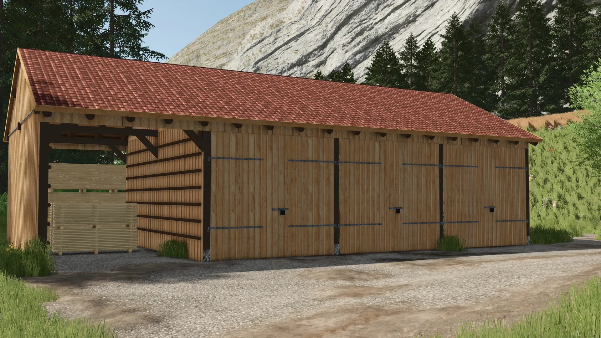 Der jeweils linke und rechte Platz wurde mit zusätzlichen Latten verstärkt, um die Lagerung von Rund- und Quaderballen zu ermöglichen.