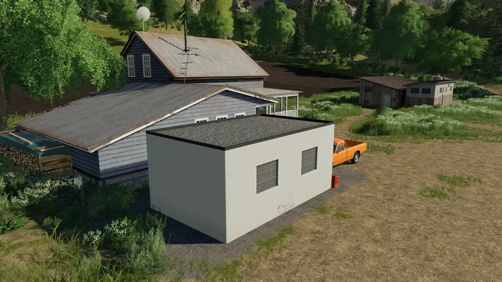 Dies ist eine platzierbare Garage.Fenster, Dach und Tor sind bereits an die Garage montiert.