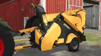 Der gezogene Emily-Vortex-Strohverteiler sorgt dank seiner leistungsstarken Turbine für eine gleichmäßige und effiziente Einstreu.