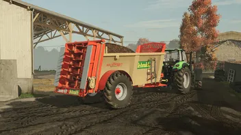 Dung- oder Kompoststreuer mit einem Fassungsvermögen von 16660 Litern oder 18860 Litern mit Erweiterungen.