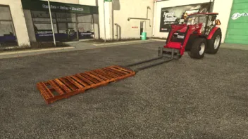 Palette mit Spanngurten und langen Palettengabeln