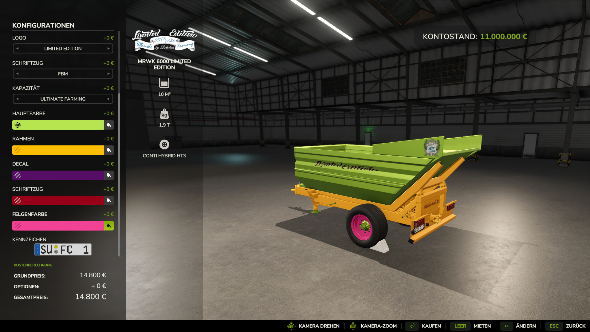 - Kapazitätswahl Standard 12000 l, Limited Edition 16000 l oder Ultimate Farming 20000 l