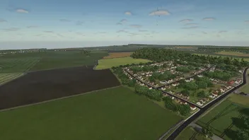 Die Landschaft bietet eine typische norddeutsche Umgebung mit Dörfern, Wäldern, Feldern und landwirtschaftlicher Infrastruktur.